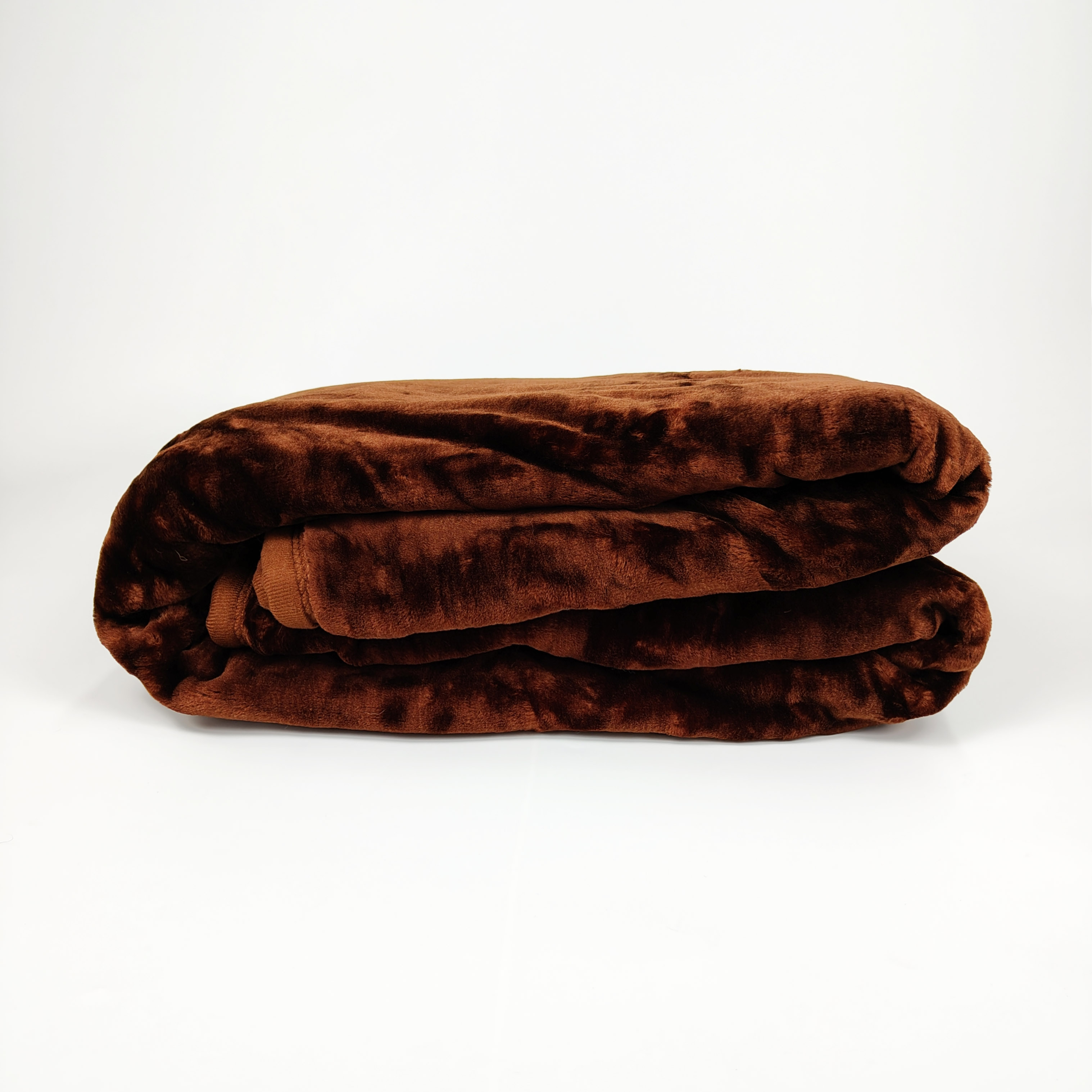 Koc akrylowy - Gruby i ciepły- Ciemno brązowy, poskładany koc, zdjęcie ze skosu