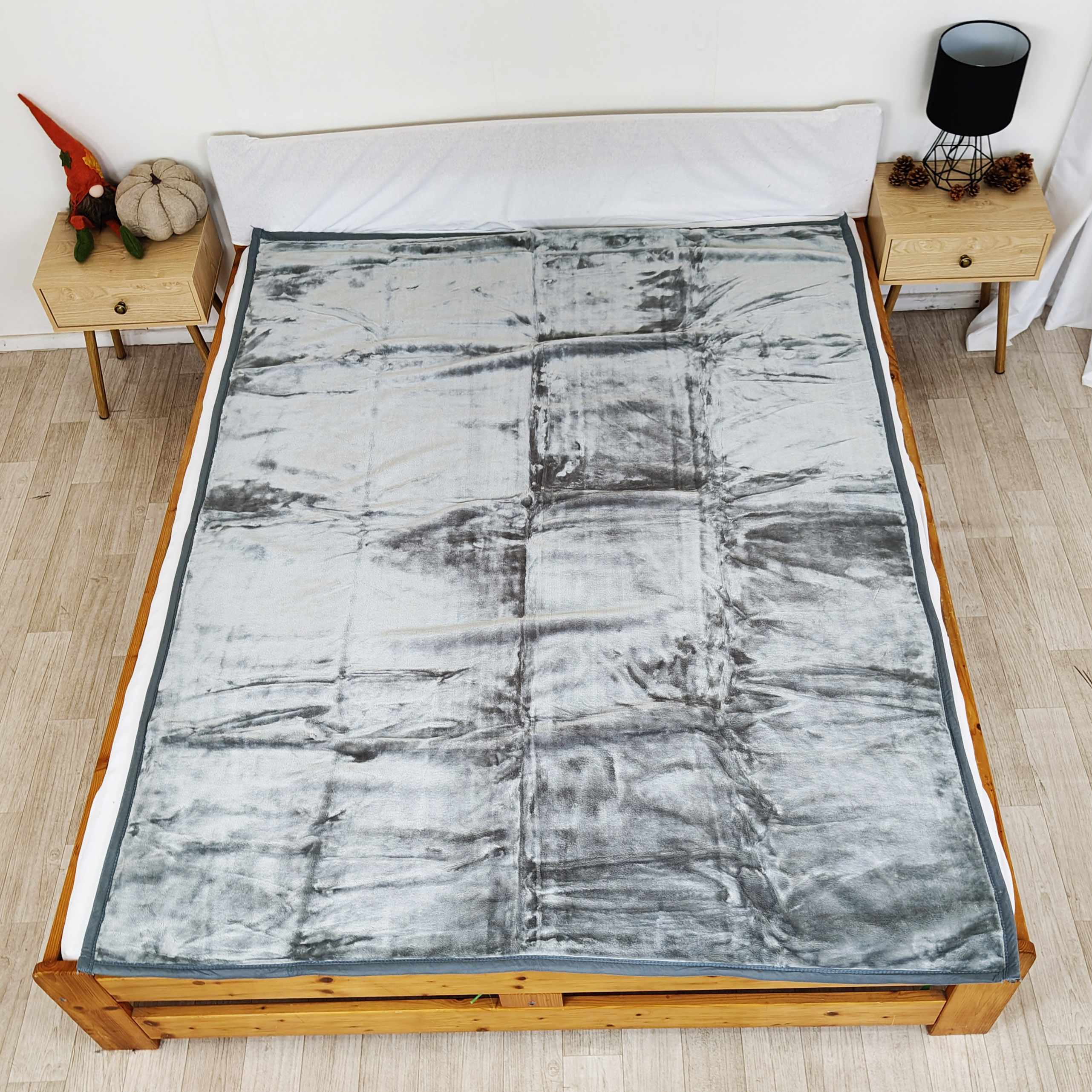 Koc akrylowy - Gruby i ciepły- Jasny Szary, koc rozłożony na lóżku