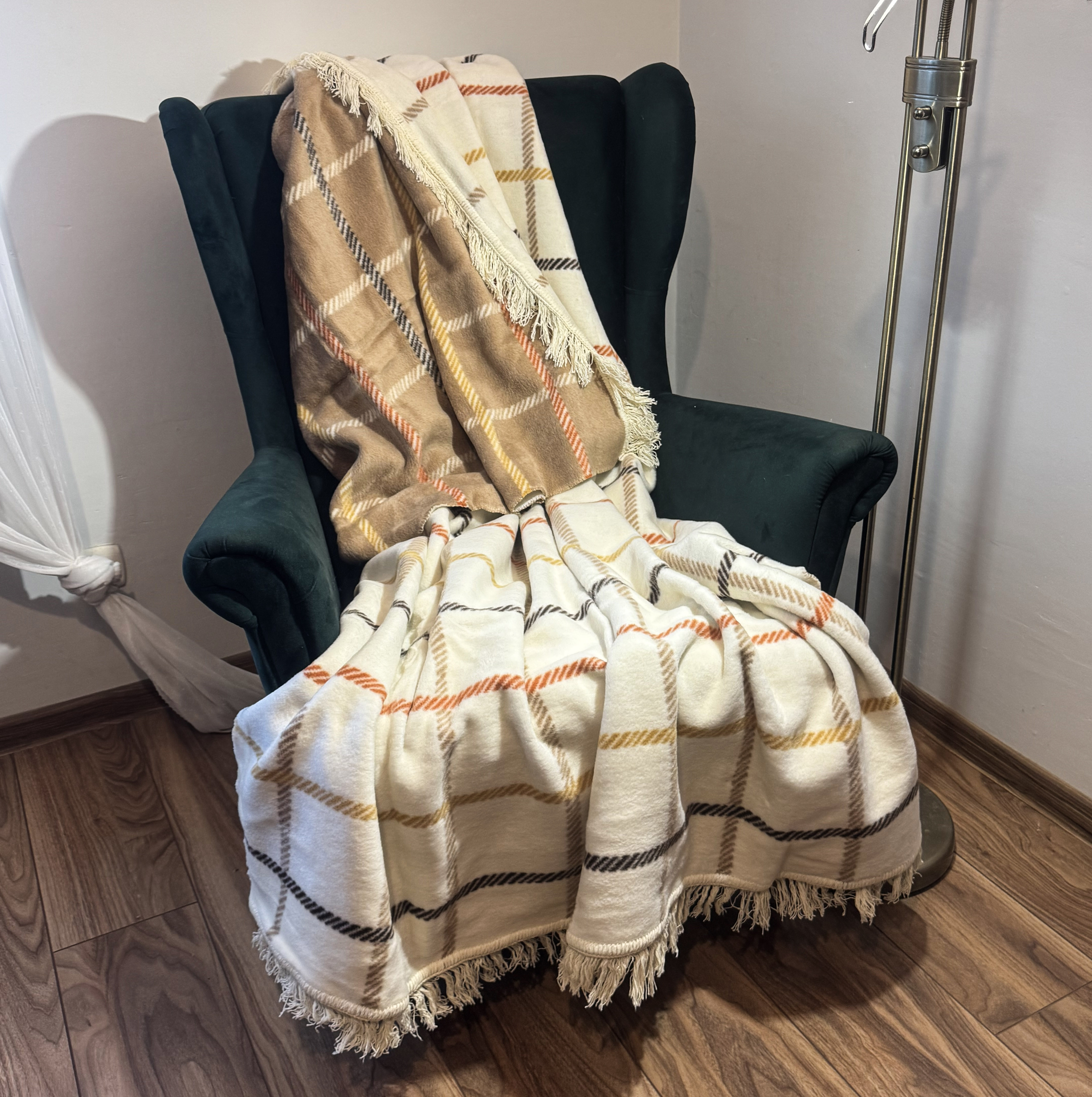 Strona główna » KOCE » Koc ciepły/ pled 150x200- Ecru krata- dwustronny