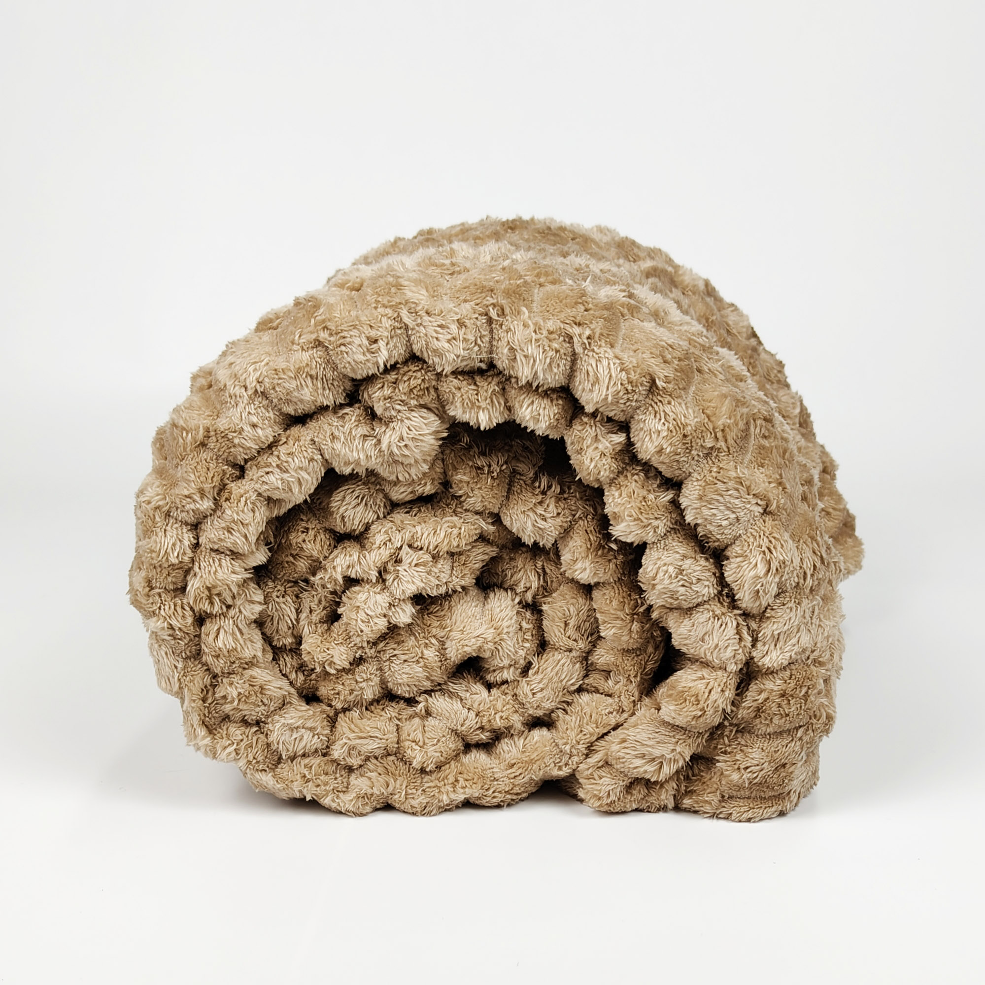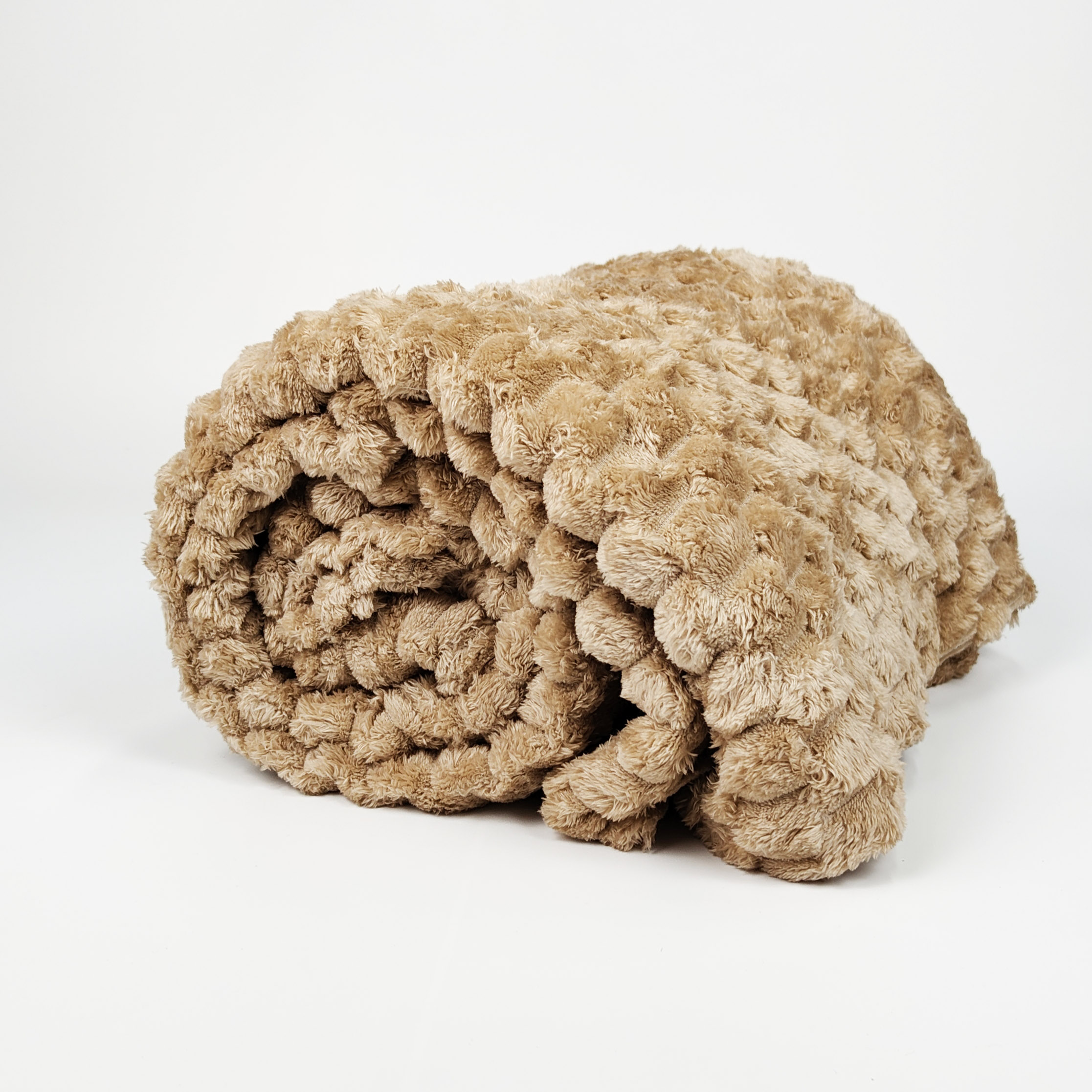 Koc z Mikrofibry Pluszowy tłoczony 200x220 - Jasny Beż, rulon zdjęcie z boku