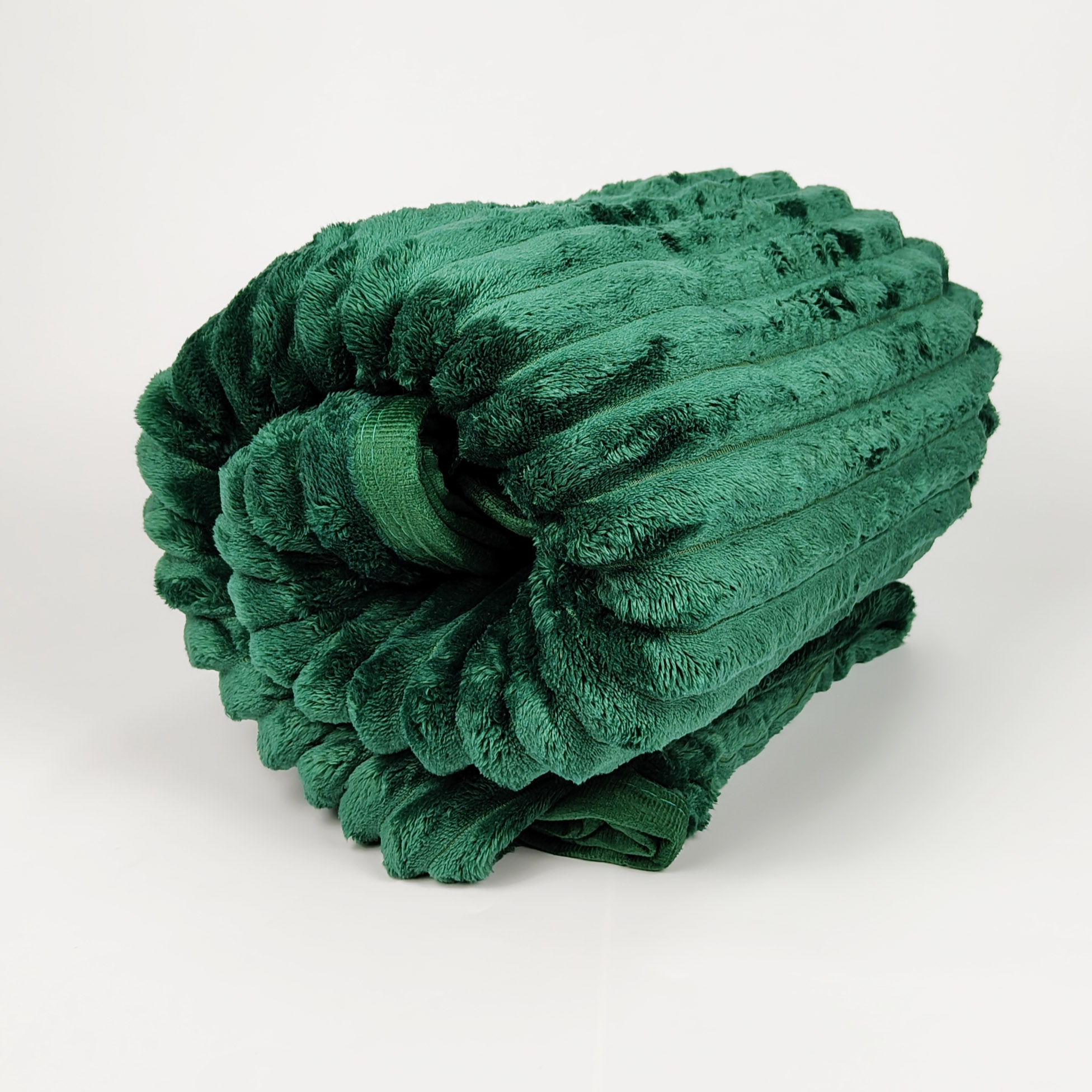 Koc z Mikrofibry Pluszowy tłoczony 200x220 - Zieleń butelkowa, koc zwinięty, zdjęcie z boku