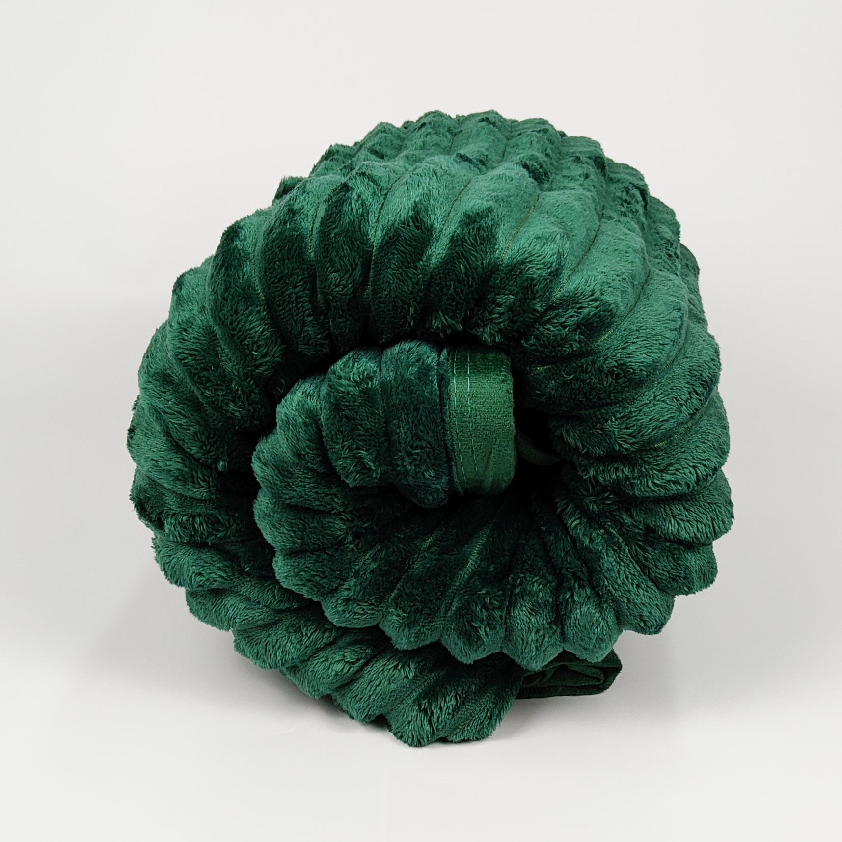 Koc z Mikrofibry Pluszowy tłoczony 200x220 - Zieleń butelkowa, koc zwinięty, zdjęcie z przodu