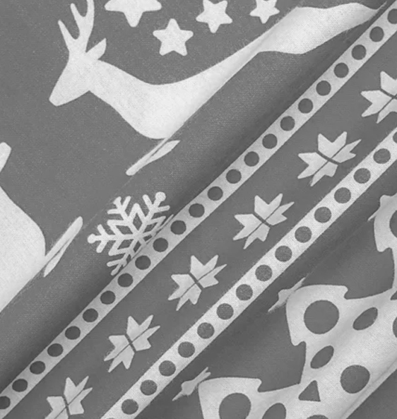 Pościel Świąteczna FLANELOWA Ciepła i polska- Renifery na szarymfaktura flaneli