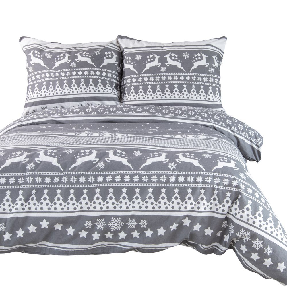 Pościel Świąteczna FLANELOWA Ciepła i polska- Renifery na szarym