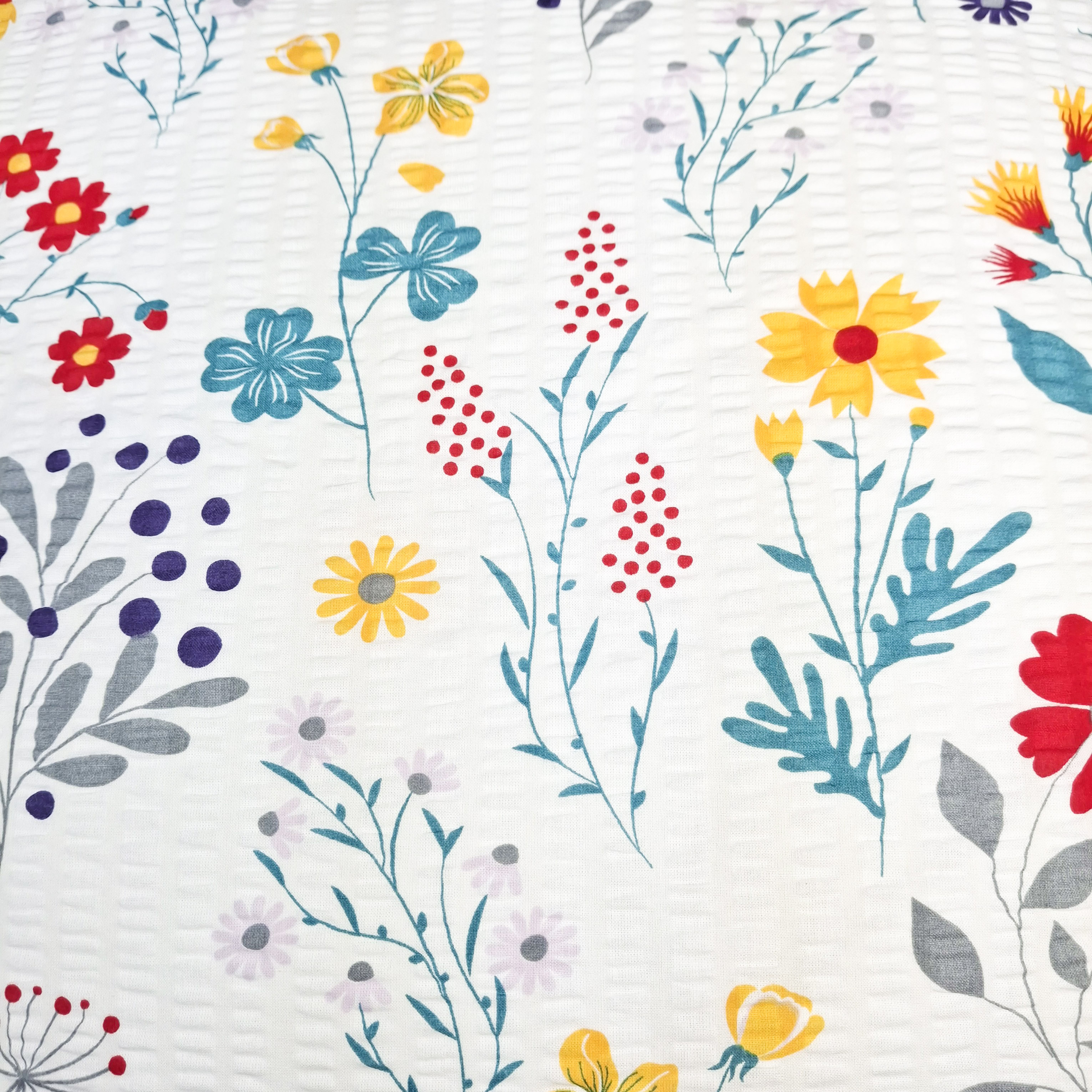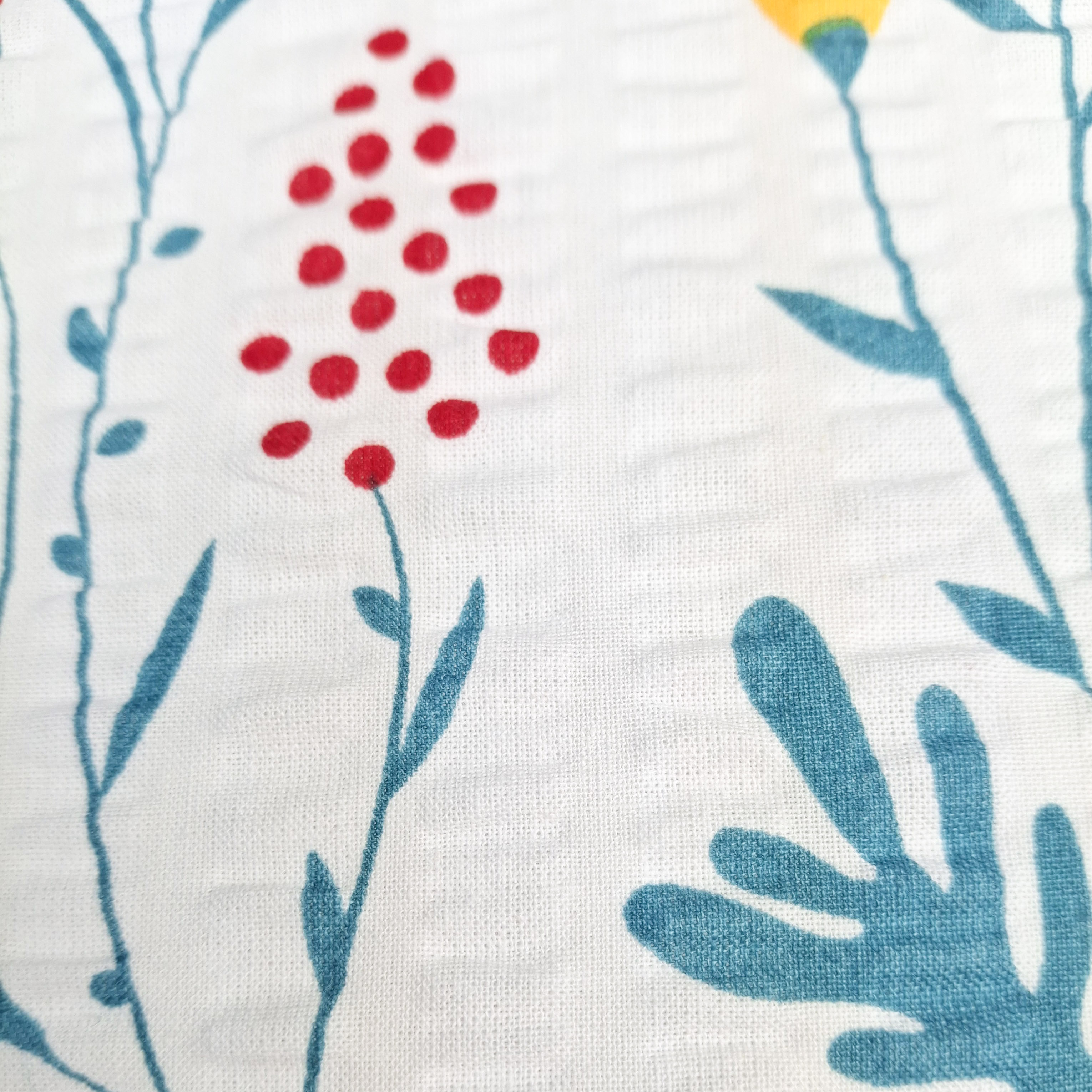 Pościel z Kory PREMIUM Lilia Wytrzymała- Kolorowa łąka na bieli  1345B, faktura materiału z bliska