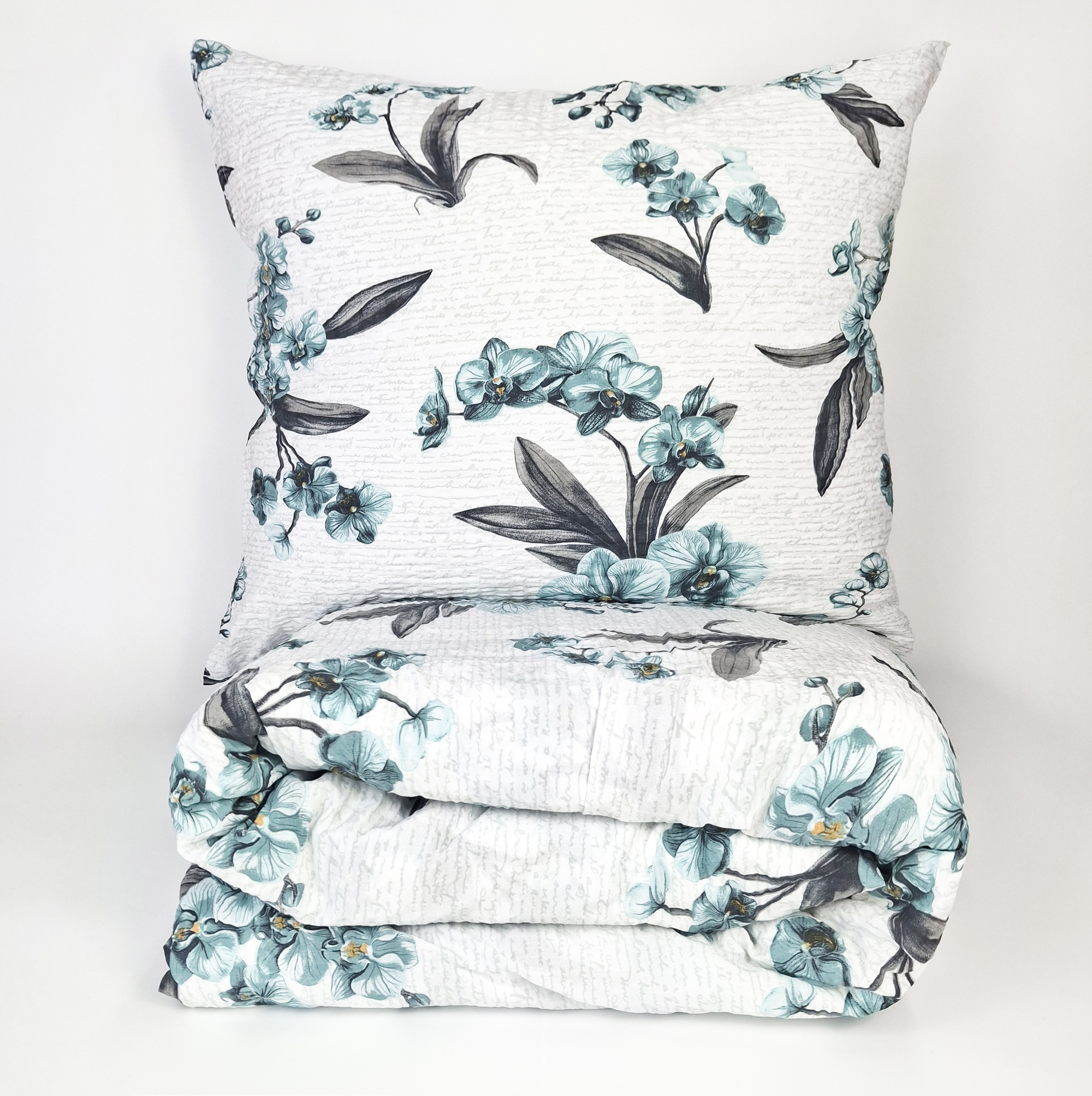 Pościel z Kory PREMIUM Lilia Wytrzymała- Niebieskie Storczyki na Bieli 1363