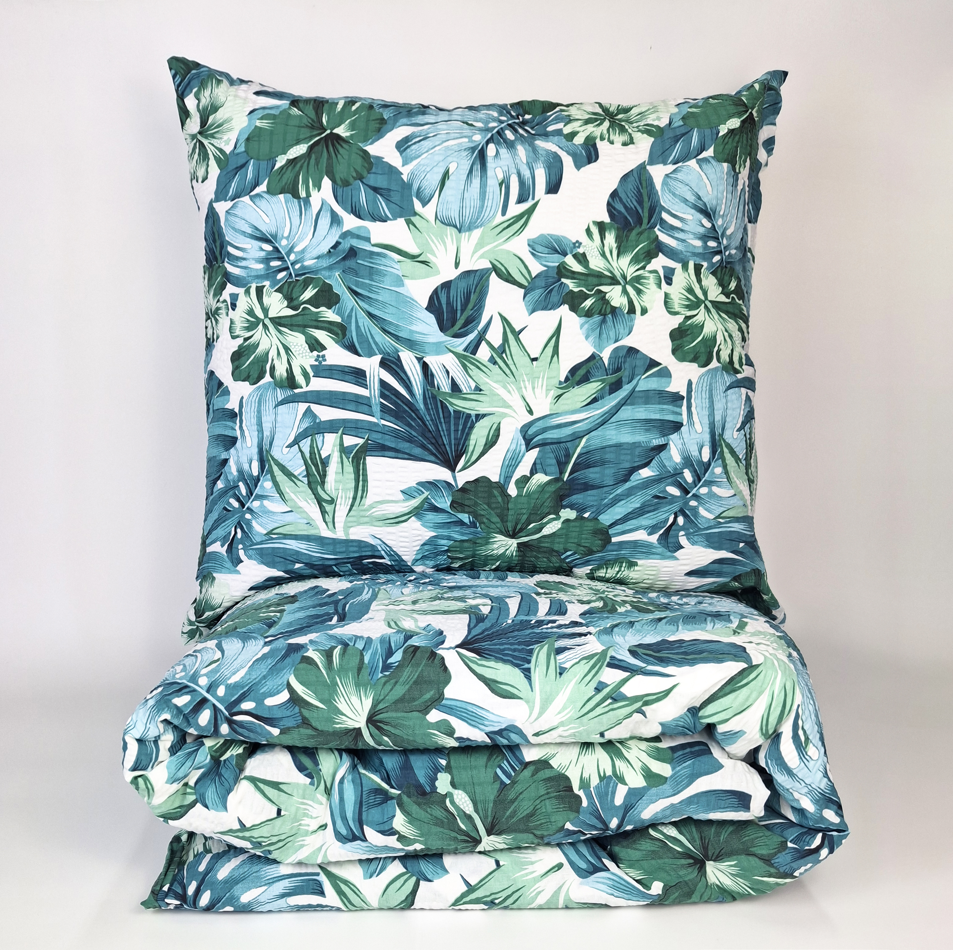 Strona główna » POŚCIELE » Pościel z Kory PREMIUM Lilia Wytrzymała- Niebiesko-zielona dżungla na białym 1306