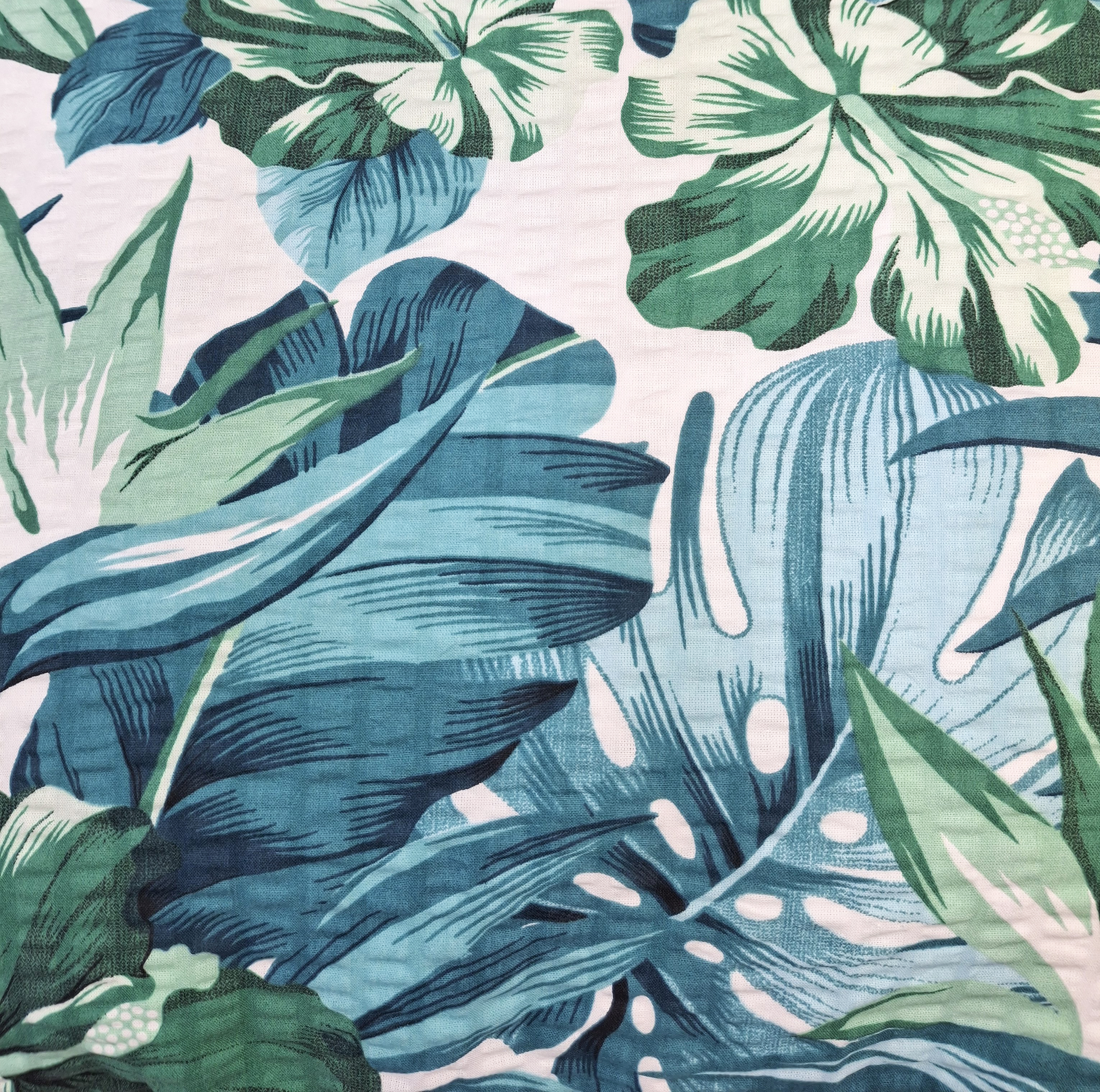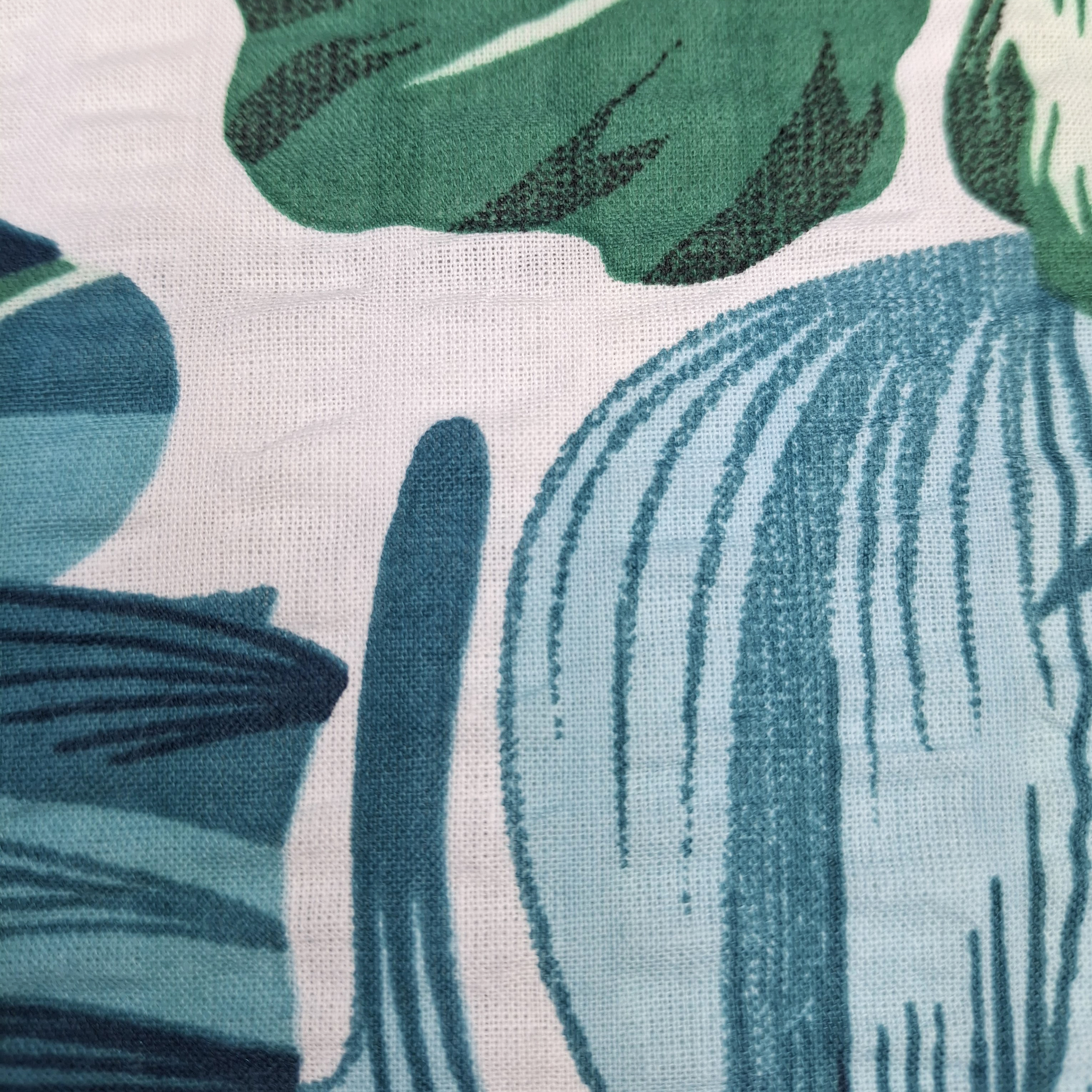 Pościel z Kory PREMIUM Lilia Wytrzymała- Niebiesko-zielona dżungla na białym  1306, faktura materiału z bliska