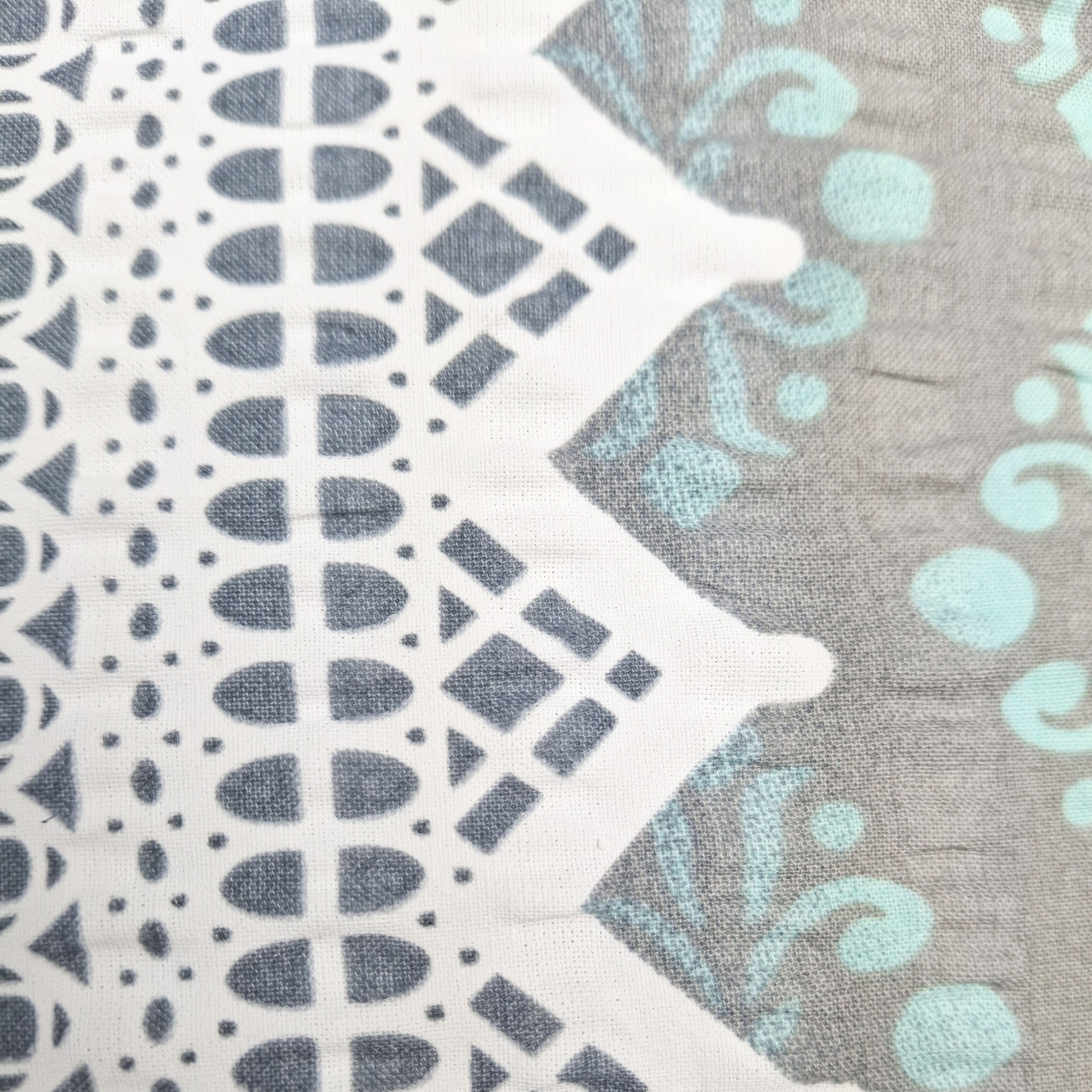 Pościel z Kory PREMIUM Lilia Wytrzymała- Biała geometria na jasnym szarym 1368, poduszka z poskaładaną kołdrą w danej  p