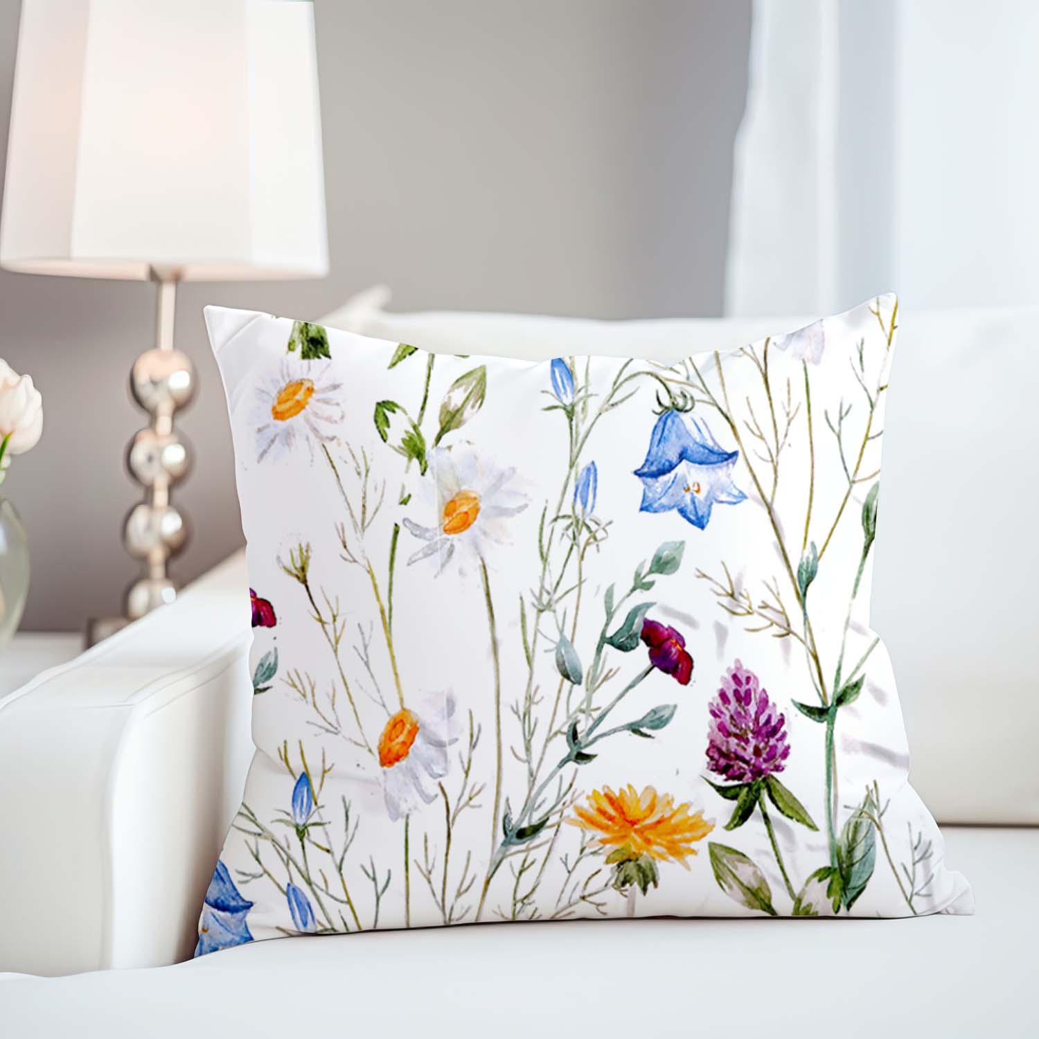 Poszewka  Satyna bawełniana kolorowe kwiaty na bieli (łąka) - Miękka, polska